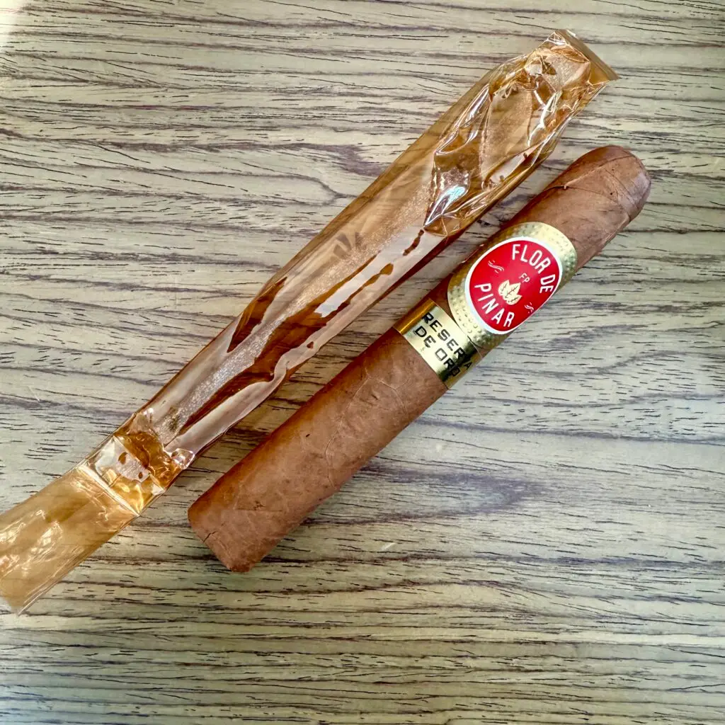 From what i can recall, as there is not much information out there regarding this blend and brand, is a blend the guys at Fanatix Cigar House brought into their lounge after visiting Chico Rivas in the DR. They offered a limited amount of these for a very short time. My attention is immediately drawn to the cellophane, which is a rich golden brown from the aging of this cigar. I’ve never seen a cellophane coated with oils like this. So immediately i’m thinking, this will be smooth as hell. This one kicked off with some red pepper followed by cedar and strong cardamom and baking spices. Not really something I enjoy. As the second third hit a nice milk chocolate came forward and pushed the cardamom back a bit, and a citrus peel came in in the background. A little bit better but still, the cardamom and baking spices somewhat controlled this third again. But.. as the final third hit, a really nice creamy milk chocolate and coffee took over the profile and pushed the unwanted notes back into the background. A floral component also joined in but not too overpowering. This final third was definitely the best of the three, but even as I went through the final third, the cardamom kept trying to push its way forward. Not really my jam. This is one I may revisit some day, maybe in the corona size, and I’d recommend this for those who want to try more unknown blends with a ton of age, and those who enjoy more mild blends.